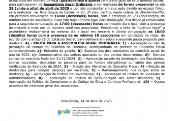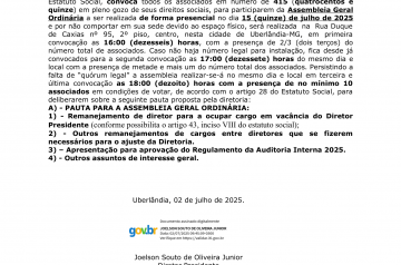 Ordinária a ser realizada de forma presencial no dia 15 (quinze) de julho de 2025